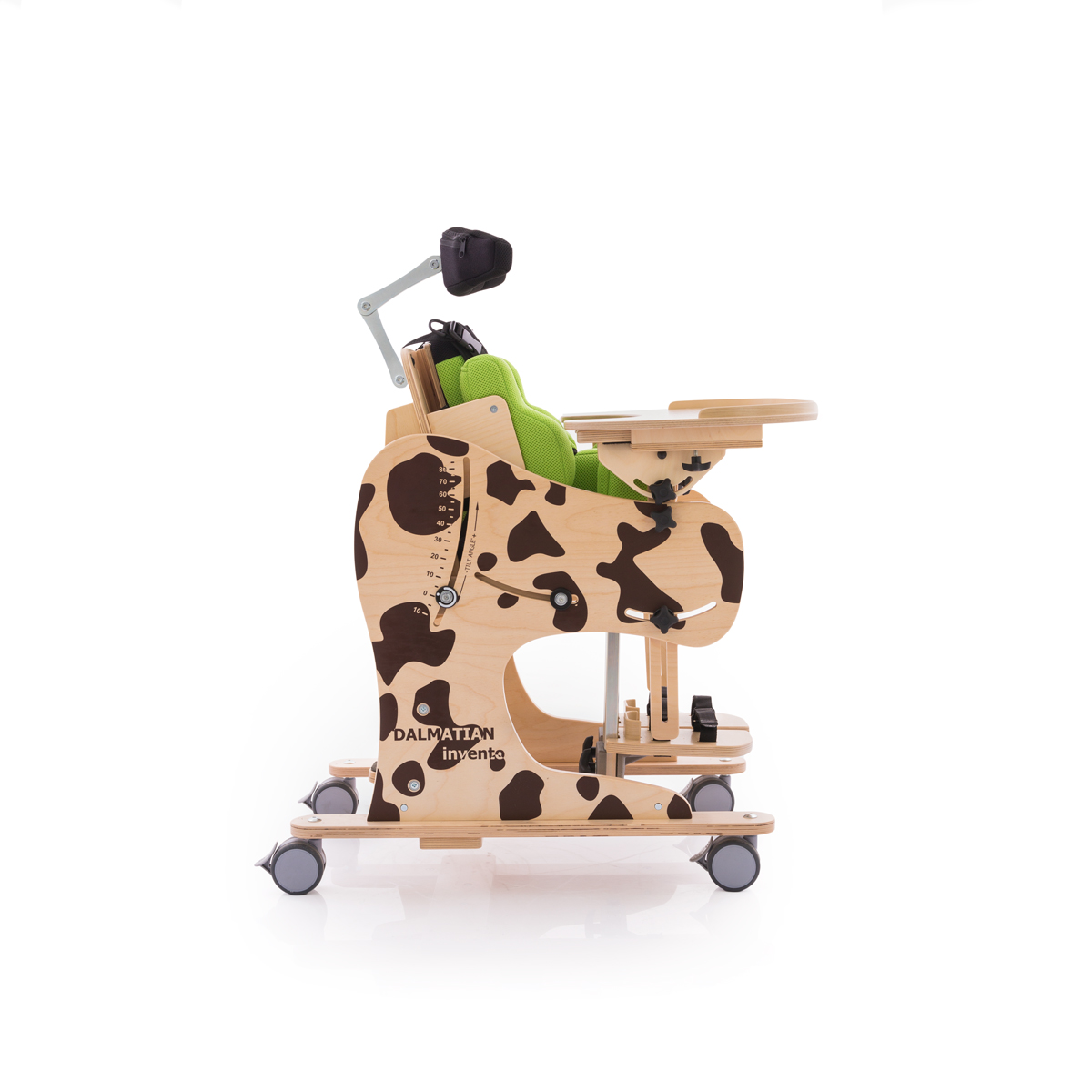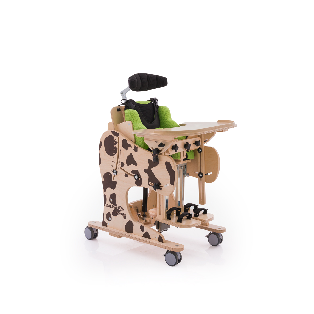 Urządzenie wielofunkcyjne DALMATYŃCZYK Invento™ ma szerokie zastosowanie w procesie rehabilitacji. Polecane jest zarówno dla dzieci, jak i młodzieży. Pełni rolę fotelika rehabilitacyjnego, pionizatora statycznego oraz leżanki, co jest niewątpliwie jego główną zaletą. Oszczędność miejsca i wielofunkcyjność to jego główne cechy. Używany zarówno we wstępnej adaptacji użytkownika do pozycji siedzącej, jak i w dalszym złożonym procesie rehabilitacji.