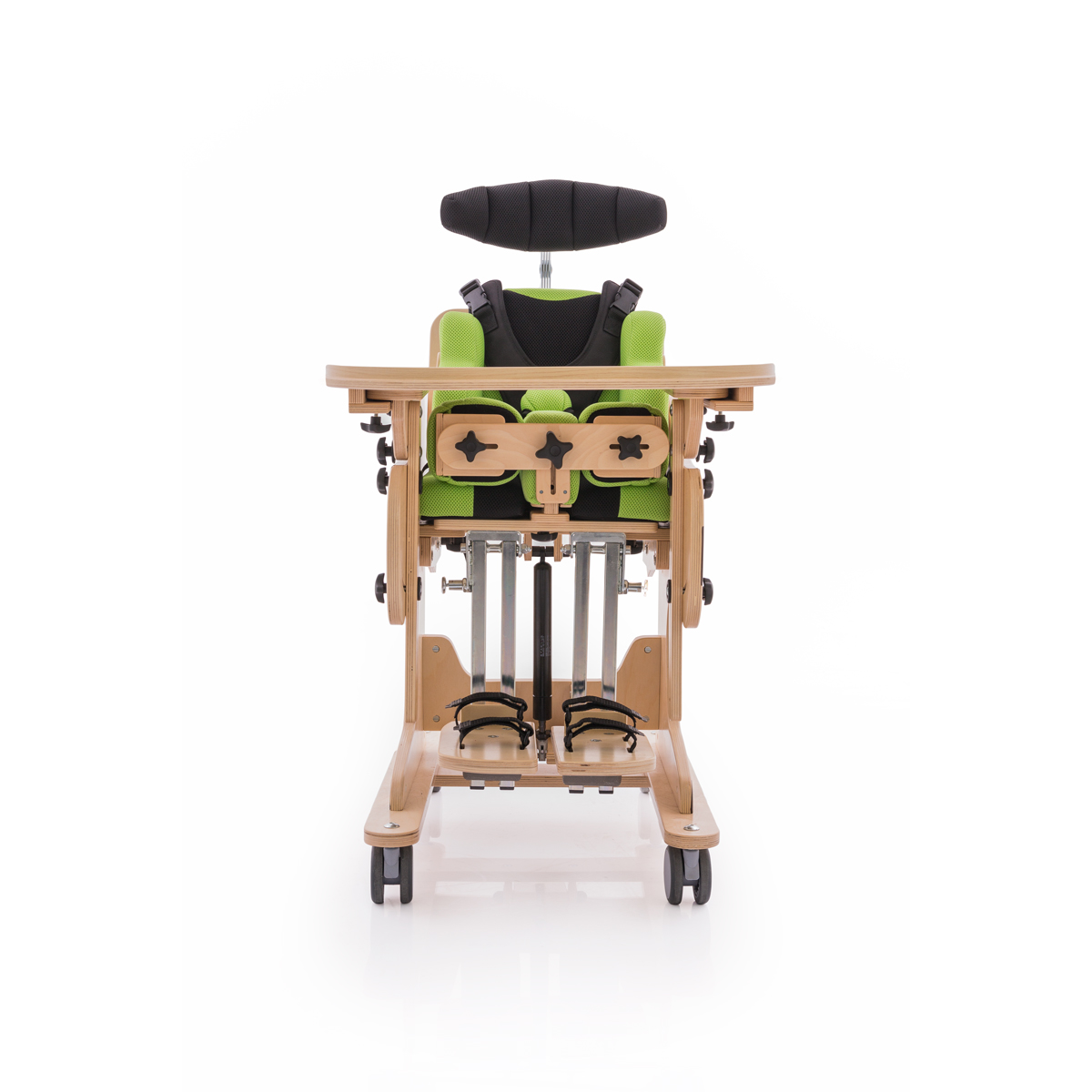 Dzięki sprężynie gazowej możemy płynnie pionizować użytkowników z pozycji leżącej do stojącej. Co więcej, możemy to zrobić nie wyjmując ich z pionizatora. Taką możliwość szczególnie docenią terapeuci oraz opiekunowie.