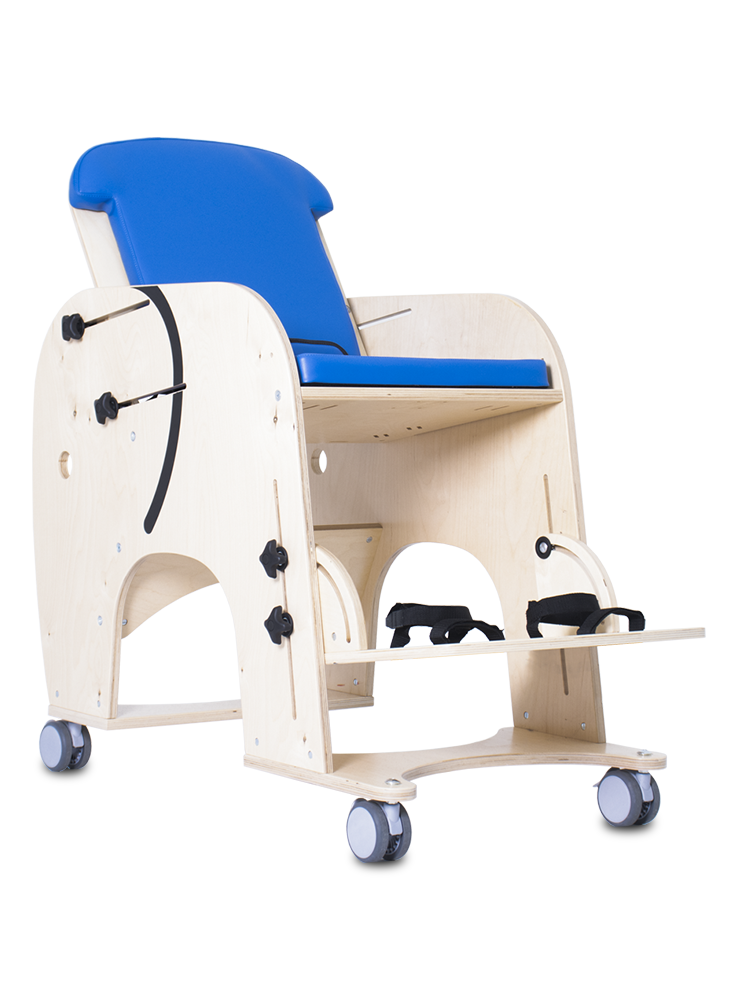 Fotelik rehabilitacyjny SŁONIK™ służy do wstępnej pionizacji dzieci w pozycji siedzącej. Prosty w budowie i obsłudze, a zarazem bardzo funkcjonalny. Bezpiecznie mogą go używać zarówno dzieci z podwyższonym napięciem mięśniowym, oraz bardzo wiotkie o zmniejszonym napięciu mięśniowym. Doskonale sprawdza się podczas wielu codziennych aktywności m.in. takich jak ćwiczenia rehabilitacyjne, jedzenie czy zabawa. Tapicerka medyczna MEDICUS™ zastosowana w foteliku, jest paroprzepuszczalna, wodoszczelna oraz łatwa w dezynfekcji. Dzięki temu z powodzeniem można z niego korzystać w domu, indywidualnie, czy też w oddziale szpitalnym lub ośrodku rehabilitacyjnym, kiedy będzie on wykorzystywany przez wiele osób. Składany podnóżek jest bardzo pomocny podczas sadzania dziecka w foteliku. Możliwość jego demontażu ułatwia przechowywanie i transport. Uniwersalna konstrukcja płyty podnóżka pozwala na montaż jej montaż w dwóch ustawieniach, co zwiększa zakres regulacji długości podnóżka W trosce o ludzi i środowisko produkt został wykonany z ekologicznych, bezpiecznych materiałów. Fotelik SŁONIK™ jest szczególnie rekomendowany dla osób, które mają problem z samodzielnym utrzymaniem pozycji siedzącej (w szczególności ze sprzężonymi schorzeniami neurologicznymi i ortopedycznymi).