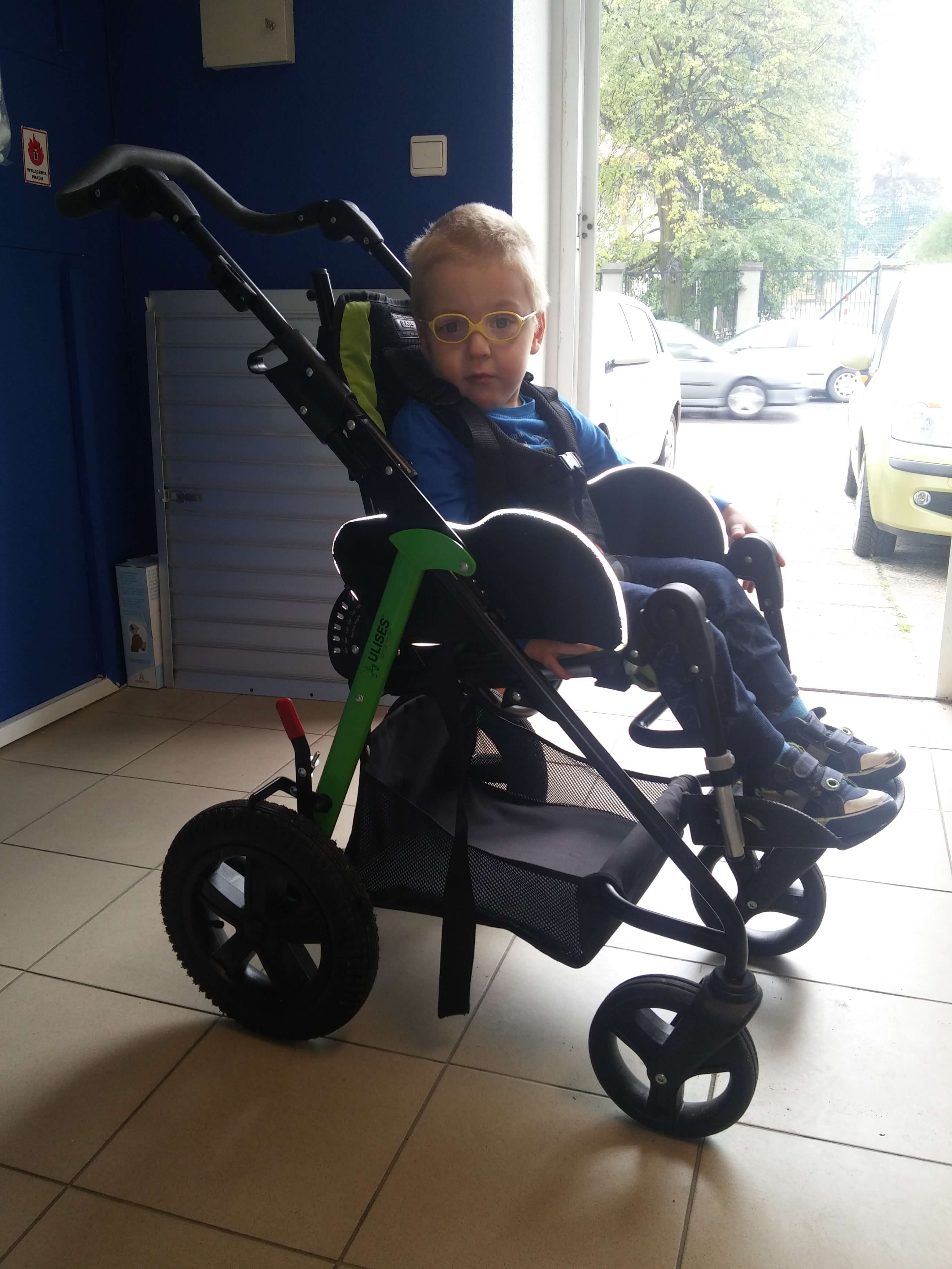 Zdecydowaliśmy się na wózek specjalny Ulises EVO. Jest on niedużym wózkiem o wielu zaletach. Jego niewielkie wymiary i prosta, intuicyjna obsługa sprawia, że bez problemu mieści się w samochodzie, a jego składanie i rozkładanie jest szybkie i bez wysiłku. Wózek ma regulacje, które pozwolą na korzystanie z niego podczas, gdy Tymek będzie rósł. Podczas spacerów wózek prowadzi się lekko i płynnie. Możemy w nim siedzieć a także leżeć i odpoczywać. Wiele dodatków jakie można użyć wraz z Ulisesem, takie jak np. peloty boczne zwiększają wygodę i zapewniają bezpieczeństwo synka. Co bardzo ważne dla nas, Tymuś bardzo dobrze czyje się w wózku i chętnie z niego korzystamy.