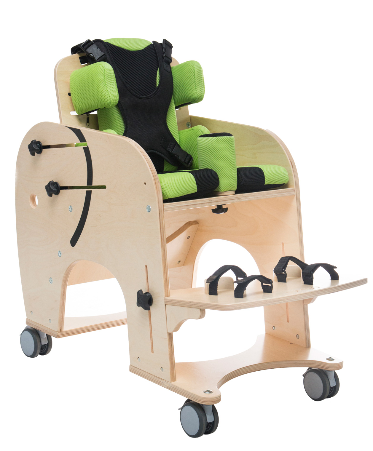 Fotelik rehabilitacyjny SŁONIK™ służy do wstępnej pionizacji dzieci w pozycji siedzącej. Prosty w budowie i obsłudze, a zarazem bardzo funkcjonalny. Bezpiecznie mogą go używać zarówno dzieci z podwyższonym napięciem mięśniowym, oraz bardzo wiotkie o zmniejszonym napięciu mięśniowym. Regulowane peloty boczne pomagają korygować wady postawy. Fotelik SŁONIK™ jest bardzo przydatny w schorzeniach ortopedycznych. Kamizelka bezpieczeństwa wyposażona została w innowacyjny system typu Chwyć i pociągnij™. Umożliwia on błyskawiczne i dokładne zabezpieczenie dziecka. Rozmiar 3 wyposażono w składany podnóżek, który jest bardzo pomocny podczas sadzania dziecka w foteliku. W trosce o ludzi i środowisko produkt został wykonany z ekologicznych, bezpiecznych materiałów.