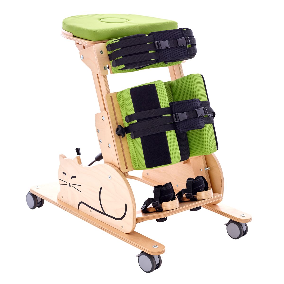 Pionizator KOTEK I™ powstał z myślą o przedniej pionizacji dzieci, u których dysfunkcje narządu ruchu uniemożliwiają samodzielne przyjmowanie pozycji stojącej. Pionizacja przyczynia się do zdobywania przez dziecko nowych doświadczeń płynących z obserwacji najbliższego otoczenia oraz stymuluje jego rozwój psychofizyczny. Ponadto reguluje ona procesy fizjologiczne oraz dotlenia organizm dziecka. KOTEK I™ daje wiele korzyści podczas jego użytkowania. Możliwość łatwej i płynnej zmiany kąta pochylenia (od 25° do 85°) nawet z dzieckiem w urządzeniu. Rozbudowany system pelot i pasów bezpieczeństwa sprawia, że dziecko czuje się w KOTKU I™ bardzo pewnie i bezpiecznie. W trosce o małego użytkownika produkt został wykonany z ekologicznych, bezpiecznych dla człowieka i środowiska materiałów.