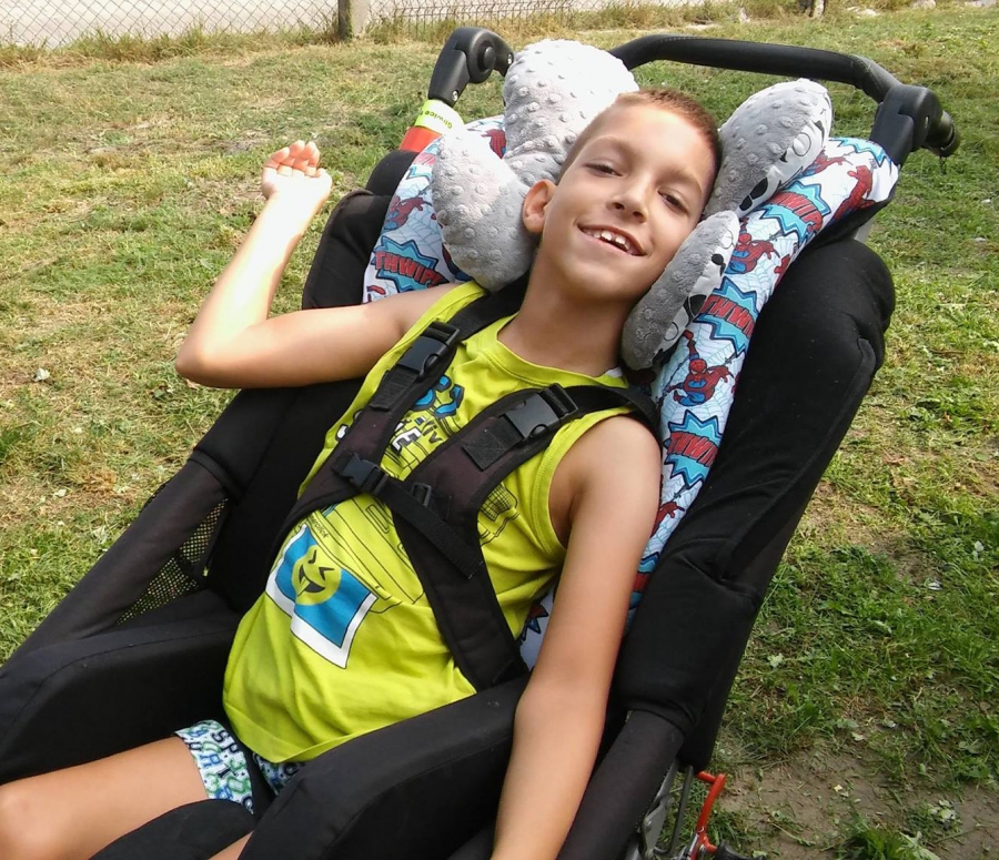W trakcie rehabilitacji korzysta z wielu sprzętów i pomocy. Jedną z nich jest wózek inwalidzki RACER EVO. Jest to pierwszy wózek, który Szymon w pełni zaakceptował po wcześniejszym sprawdzeniu wielu rozwiązań różnych producentów. Mieszkamy w terenie wiejskim, gdzie RACER EVO sprawdza się znakomicie. Dobrze się go prowadzi, jest bardzo zwrotny i dobrze wyważony. Wiem, że mogę bez najmniejszych obaw pozostawić bezpiecznie Szymona w wózku na czas np. zabawy, terapii czy nauki. Pomimo dużej spastyki syna oparcie można łatwo wyregulować nawet tak drobnej osobie jak ja. Dobrym rozwiązaniem jest także obszerna kieszeń z tyłu wózka, która podczas spacerów służy za schowek na przydatne drobne rzeczy. Wózek RACER EVO stanowi niezbędny element naszego codziennego życia.