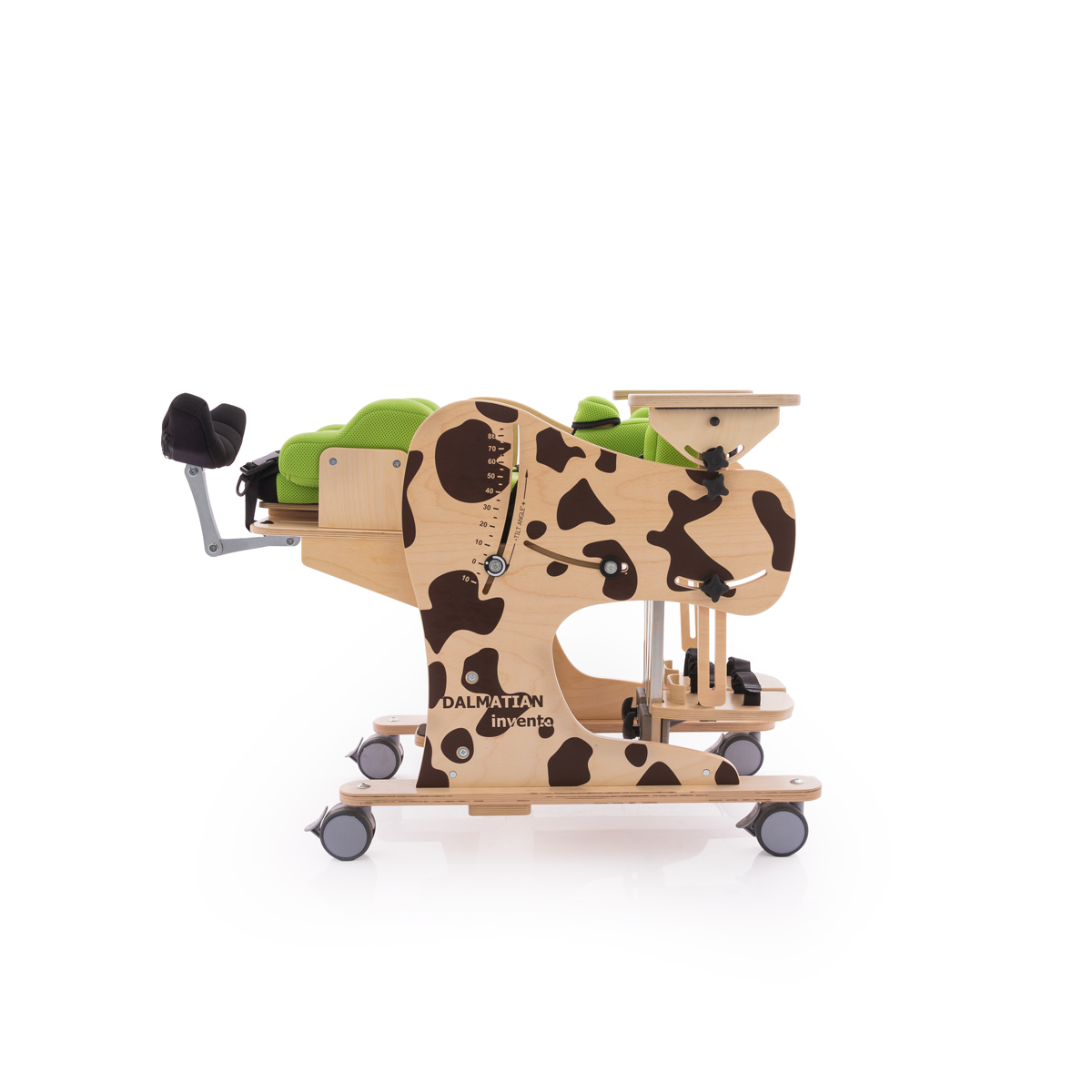 Urządzenie wielofunkcyjne DALMATYŃCZYK Invento™ ma szerokie zastosowanie w procesie rehabilitacji. Polecane jest zarówno dla dzieci, jak i młodzieży. Pełni rolę fotelika rehabilitacyjnego, pionizatora statycznego oraz leżanki, co jest niewątpliwie jego główną zaletą. Oszczędność miejsca i wielofunkcyjność to jego główne cechy. Używany zarówno we wstępnej adaptacji użytkownika do pozycji siedzącej, jak i w dalszym złożonym procesie rehabilitacji.