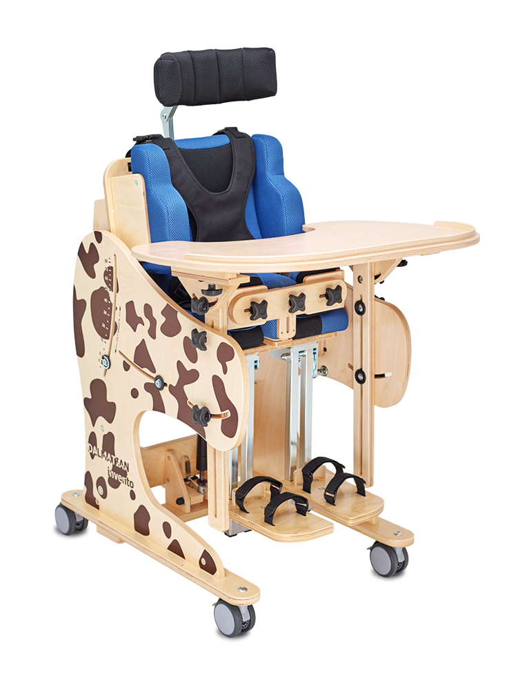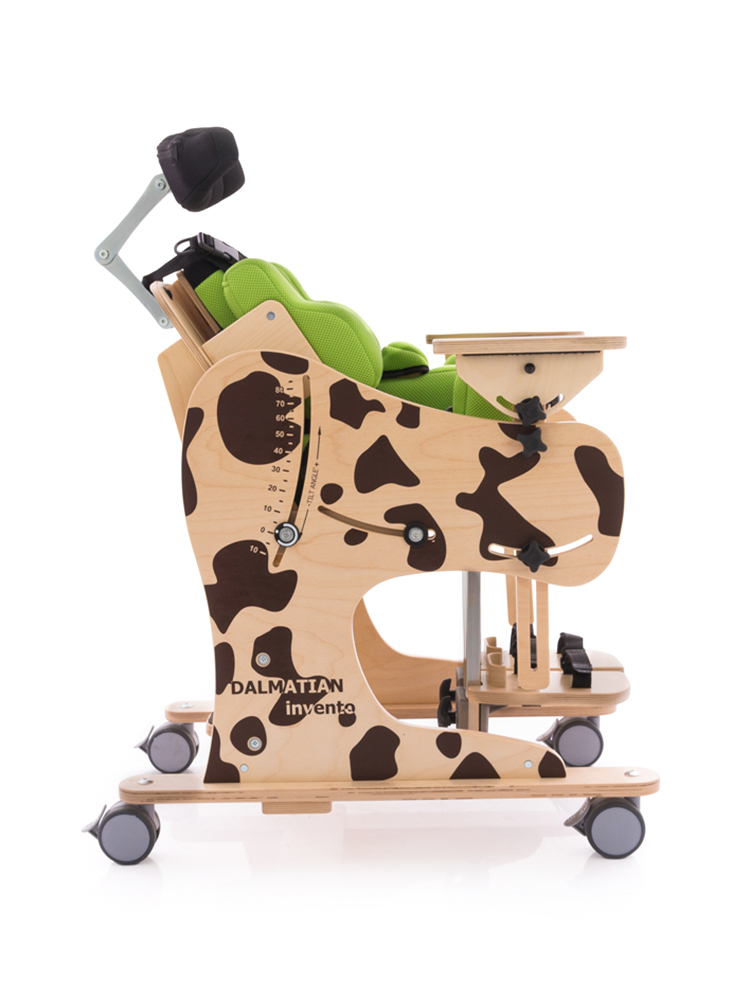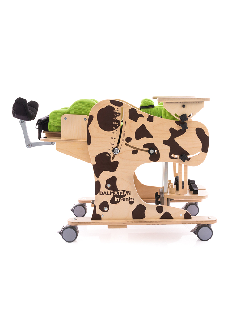 Urządzenie wielofunkcyjne DALMATYŃCZYK Invento™ ma szerokie zastosowanie w procesie rehabilitacji. Polecane jest zarówno dla dzieci, jak i młodzieży. Pełni rolę fotelika rehabilitacyjnego, pionizatora statycznego oraz leżanki, co jest niewątpliwie jego główną zaletą. Oszczędność miejsca i wielofunkcyjność to jego główne cechy. Używany zarówno we wstępnej adaptacji użytkownika do pozycji siedzącej, jak i w dalszym złożonym procesie rehabilitacji. Dzięki sprężynie gazowej możemy płynnie pionizować użytkowników z pozycji leżącej do stojącej. Co więcej, możemy to zrobić nie wyjmując ich z pionizatora. Taką możliwość szczególnie docenią terapeuci oraz opiekunowie. Rozbudowany system pelot i pasów bezpieczeństwa w DALMATYŃCZYKu Invento™ sprawia, że dziecko czuje się w nim bardzo pewnie i bezpiecznie. Zadbaliśmy jednocześnie o maksymalną wygodę i swobodę ruchów. Kamizelka bezpieczeństwa i pas biodrowy wyposażone zostały w innowacyjny system Chwyć i pociągnij™. Umożliwiają one błyskawiczne i precyzyjne zabezpieczenie dziecka w urządzeniu, a w razie potrzeby na natychmiastowe wyjęcie go z urządzenia.