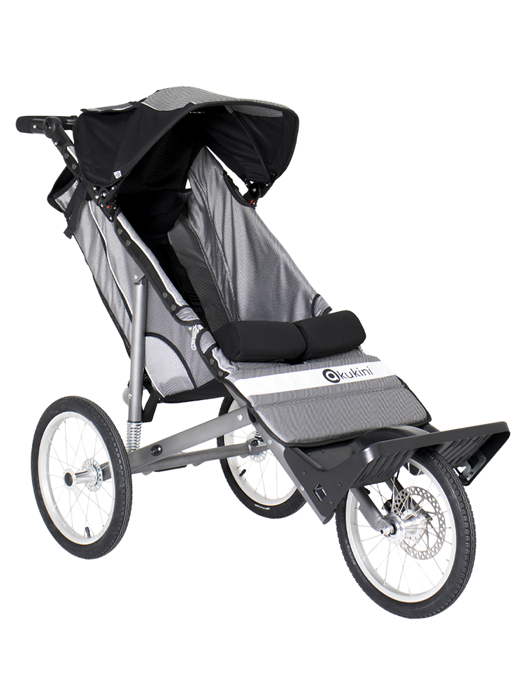Wychodząc naprzeciw oczekiwaniom naszych klientów, zespół konstruktorów Akces-MED stworzył wózek inwalidzki specjalny KUKINI™. Dzięki swojej niskiej wadze doskonale sprawdzi się zarówno podczas długich spacerów, jak i treningów biegowych. Aluminiowa konstrukcja wózka z elementami odblaskowymi gwarantuje bezpieczeństwo i komfort dziecka w trakcie zwiedzania miasta czy leśnych terenów. KUKINI™ posiada amortyzację tylnej osi oraz pompowane, 16 calowe koła szprychowe, które sprawiają, że jazda w nierównym terenie będzie przyjemnością zarówno dla dziecka, jak i opiekuna. Zabezpieczenie i poprawną pozycję siedzącą dziecka zapewniają 5-punktowe pasy z magnetycznym zapięciem. Komfortowe podparcie głowy gwarantuje anatomiczny zagłówek Octagon™ , który możemy zamontować na różnej wysokości. Regulowane oparcie umożliwia ustawienie optymalnej pozycji dziecka podczas jazdy. System szybkiego demontażu kół, wraz z kompaktową wielkością po złożeniu, ułatwia przechowywanie lub transport wózka. Trwała i wygodna tapicerka wózka posiada praktyczną kieszonkę, która pomieści telefon, portfel lub klucze. Mając na uwadze ochronę dziecka przed warunkami atmosferycznymi, wózek inwalidzki specjalny KUKINI™ można wyposażyć w regulowany daszek, który zapewni dodatkową osłonę przed wiatrem, deszczem lub słońcem.