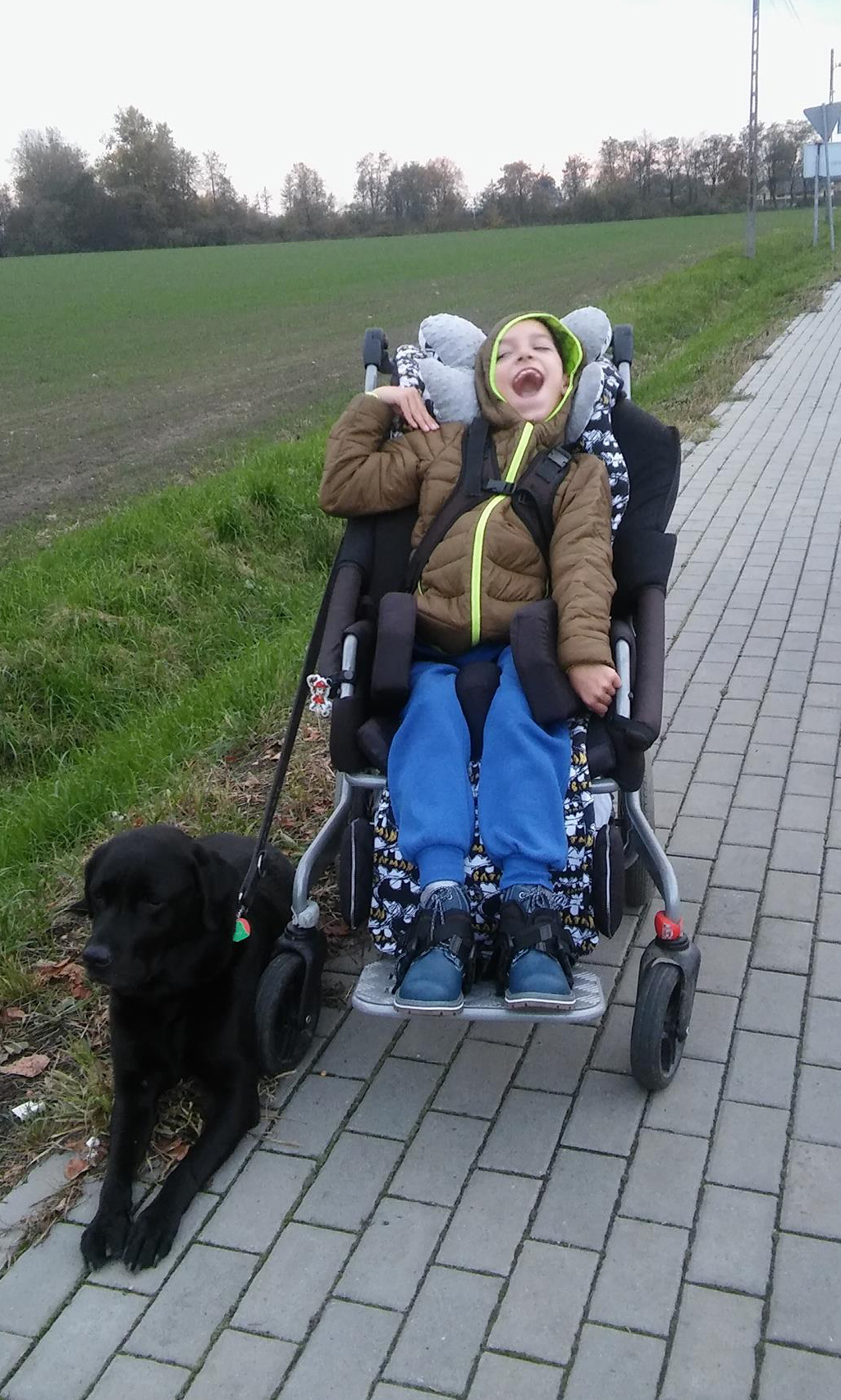 W trakcie rehabilitacji korzysta z wielu sprzętów i pomocy. Jedną z nich jest wózek inwalidzki RACER EVO. Jest to pierwszy wózek, który Szymon w pełni zaakceptował po wcześniejszym sprawdzeniu wielu rozwiązań różnych producentów. Mieszkamy w terenie wiejskim, gdzie RACER EVO sprawdza się znakomicie. Dobrze się go prowadzi, jest bardzo zwrotny i dobrze wyważony. Wiem, że mogę bez najmniejszych obaw pozostawić bezpiecznie Szymona w wózku na czas np. zabawy, terapii czy nauki. Pomimo dużej spastyki syna oparcie można łatwo wyregulować nawet tak drobnej osobie jak ja. Dobrym rozwiązaniem jest także obszerna kieszeń z tyłu wózka, która podczas spacerów służy za schowek na przydatne drobne rzeczy. Wózek RACER EVO stanowi niezbędny element naszego codziennego życia.