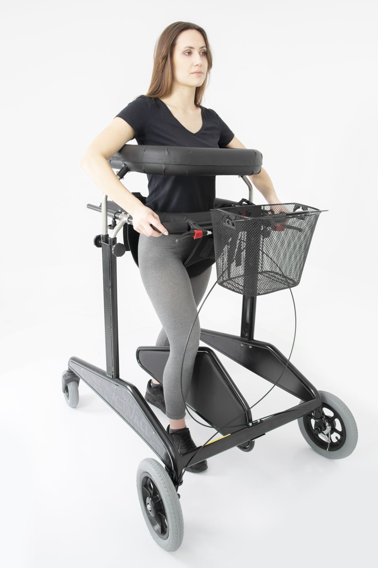 Lekka i bardzo stabilna podstawa pozwala na łatwe, samodzielne przemieszczanie. Dobre dopasowanie obejm z bezpiecznym zamknięciem daje poczucie bezpieczeństwa i swobody wykonywanych ruchów.